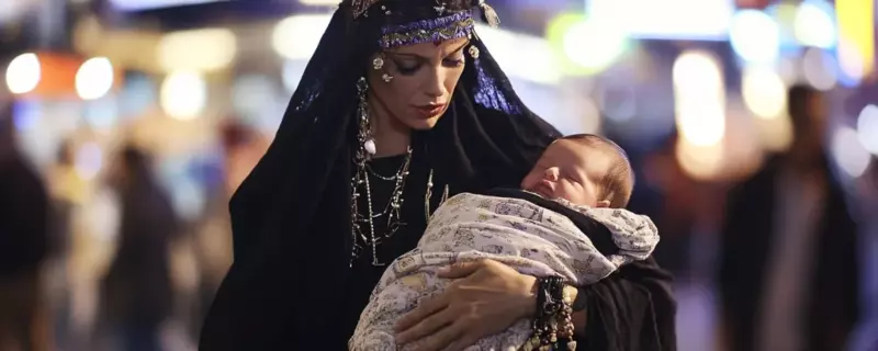Su vestido era fluido, con estampados y colores que casi brillaban bajo las luces del coche. Parecía una adivina de feria, o tal vez de un espectáculo ambulante.
