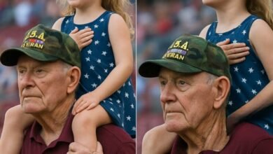 Un video de 37 segundos está conmoviendo a millones: un veterano estadounidense, cargando a su nieta sobre sus hombros, canta el himno nacional en un estadio. Pero la última toma de la cámara reveló un detalle que dejó atónitos a los internautas.