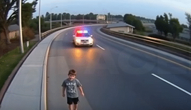 Un oficial de policía notó a un niño pequeño —de no más de tres años— deambulando solo por el borde del camino.
