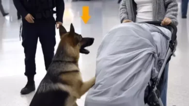 El perro pastor de servicio se abalanzó sobre el cochecito de bebé en el aeropuerto. Lo que había dentro dejó a todos paralizados.