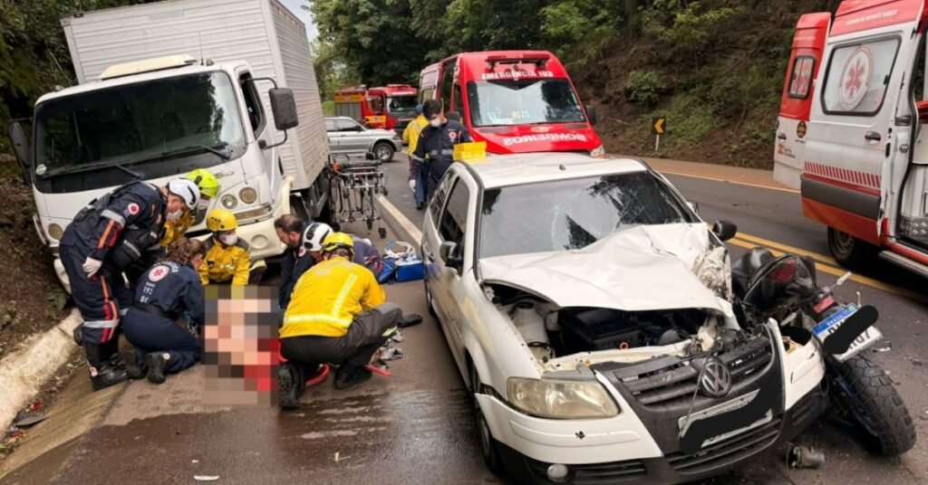 Colisión entre moto, camión y otros vehículos deja una víctima fatal en la BR-282 en SC