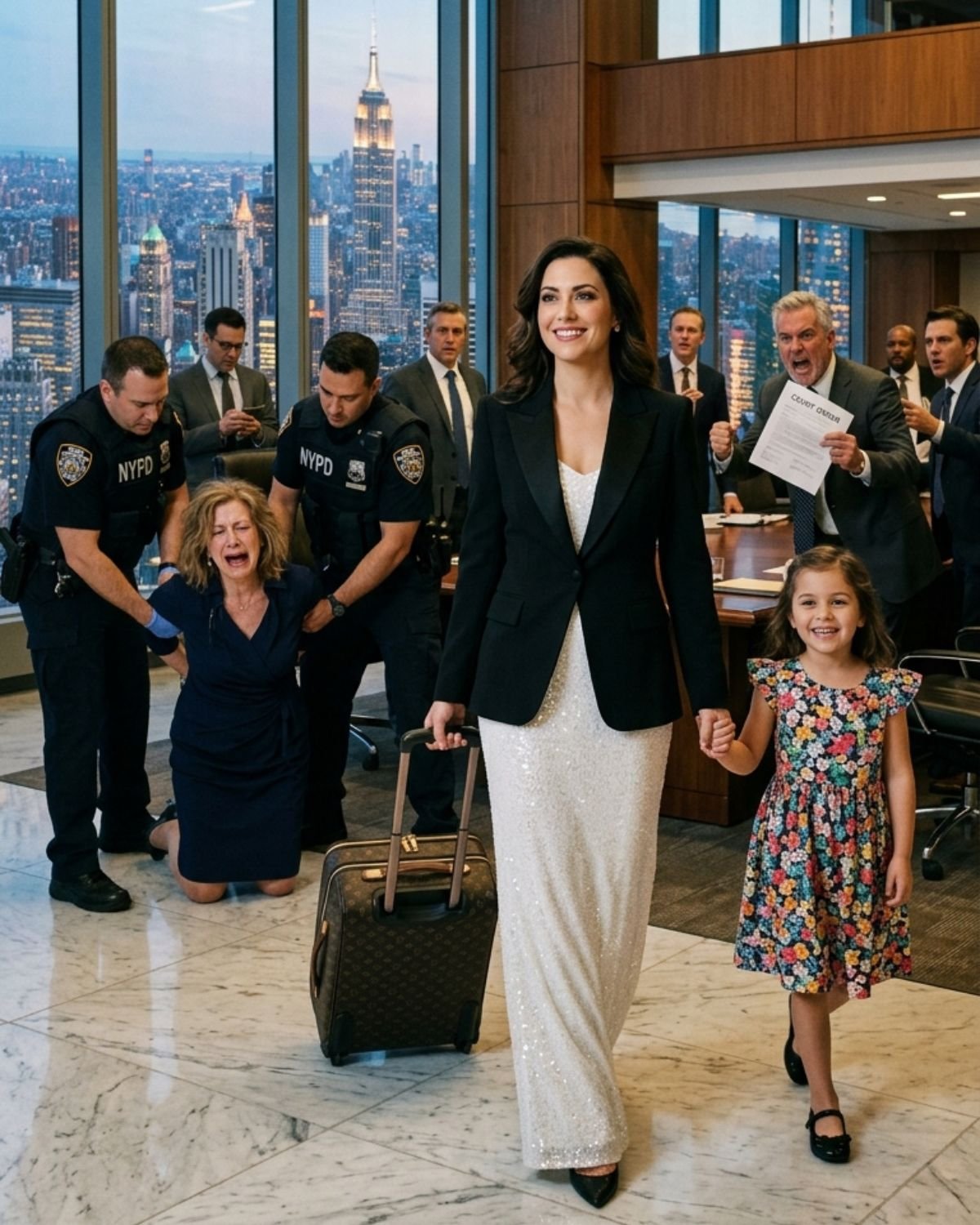 Yo estaba sentada a un lado de la enorme y reluciente mesa. Me había vestido intencionalmente para el papel que esperaban que interpretara. Llevaba un cárdigan negro sencillo y ligeramente arrugado, maquillaje mínimo y mantenía la mirada baja, proyectando la imagen de una viuda rota, agotada y completamente derrotada que solo quería escapar del trauma.
