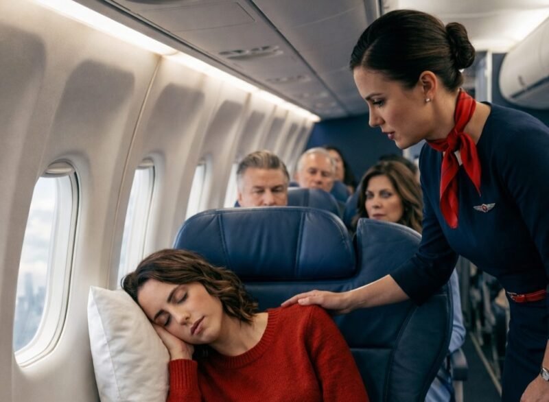 Dormía en el asiento 8A, perdida en un descanso frágil, cuando la voz del capitán rasgó la calma de la cabina: