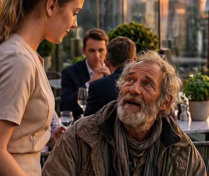 Desde lejos, una joven camarera lo observó. Vaciló por un instante, pero decidió acercarse.