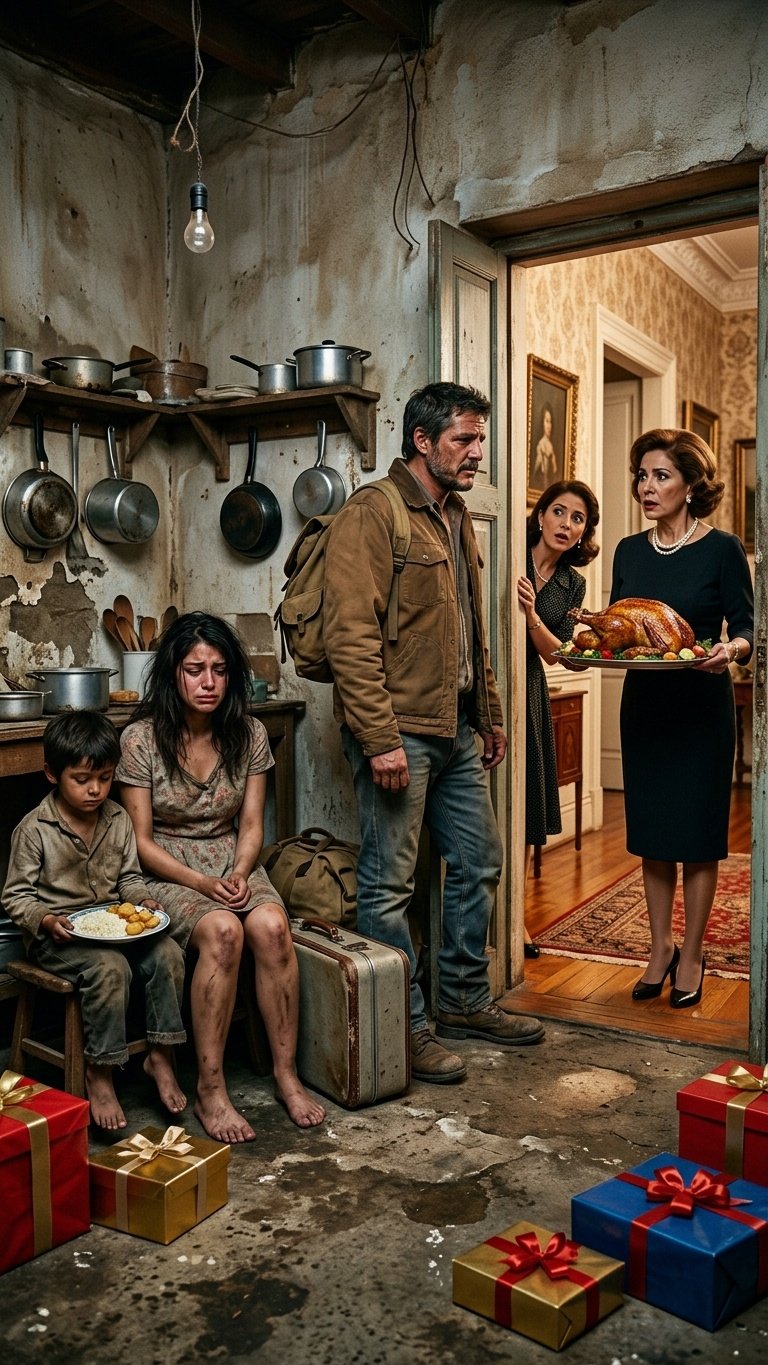 Doña Rosa vio las maletas tiradas. Vio a su hijo, arrodillado en la miseria, aferrado a los cuerpos esqueléticos de su esposa y su nieto. El terror paralizó a la anciana. Sus manos comenzaron a temblar con tanta violencia que la copa de cristal se le resbaló, estallando en mil pedazos sobre sus zapatos de marca.