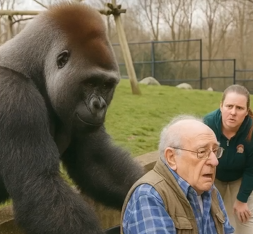 El silencio se apoderó del lugar hasta que alguien susurró: “Ella lo recuerda.” Lentamente, la gorila lo devolvió a su silla y lo empujó hacia la cerca. Cuando los cuidadores lo rescataron, el hombre tenía los ojos llenos de lágrimas: la había reconocido. Era la misma gorila que él había criado y salvado muchos años atrás.