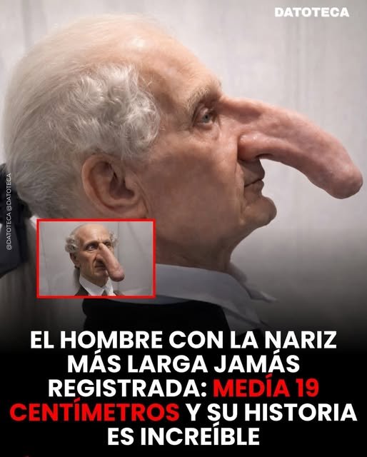 Según el sitio web de los Récords Mundiales Guinness (GWR), existen registros históricos que indican que Thomas Wedders, quien vivió en Inglaterra durante la década de 1770 y formaba parte de un circo ambulante de rarezas, tenía una nariz que medía 19 cm (7.5 pulgadas) de largo.