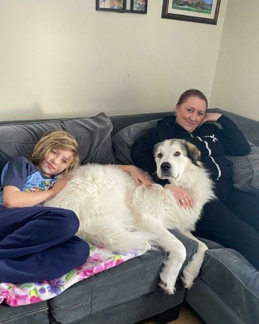 Ahora, dos meses después, sigue aquí, acaparando el sofá, estirándose sobre nosotros como si fuera el dueño del lugar. Lo llamamos Alce porque, bueno, ¿qué otro nombre se le puede poner a un perrito faldero de 45 kilos?