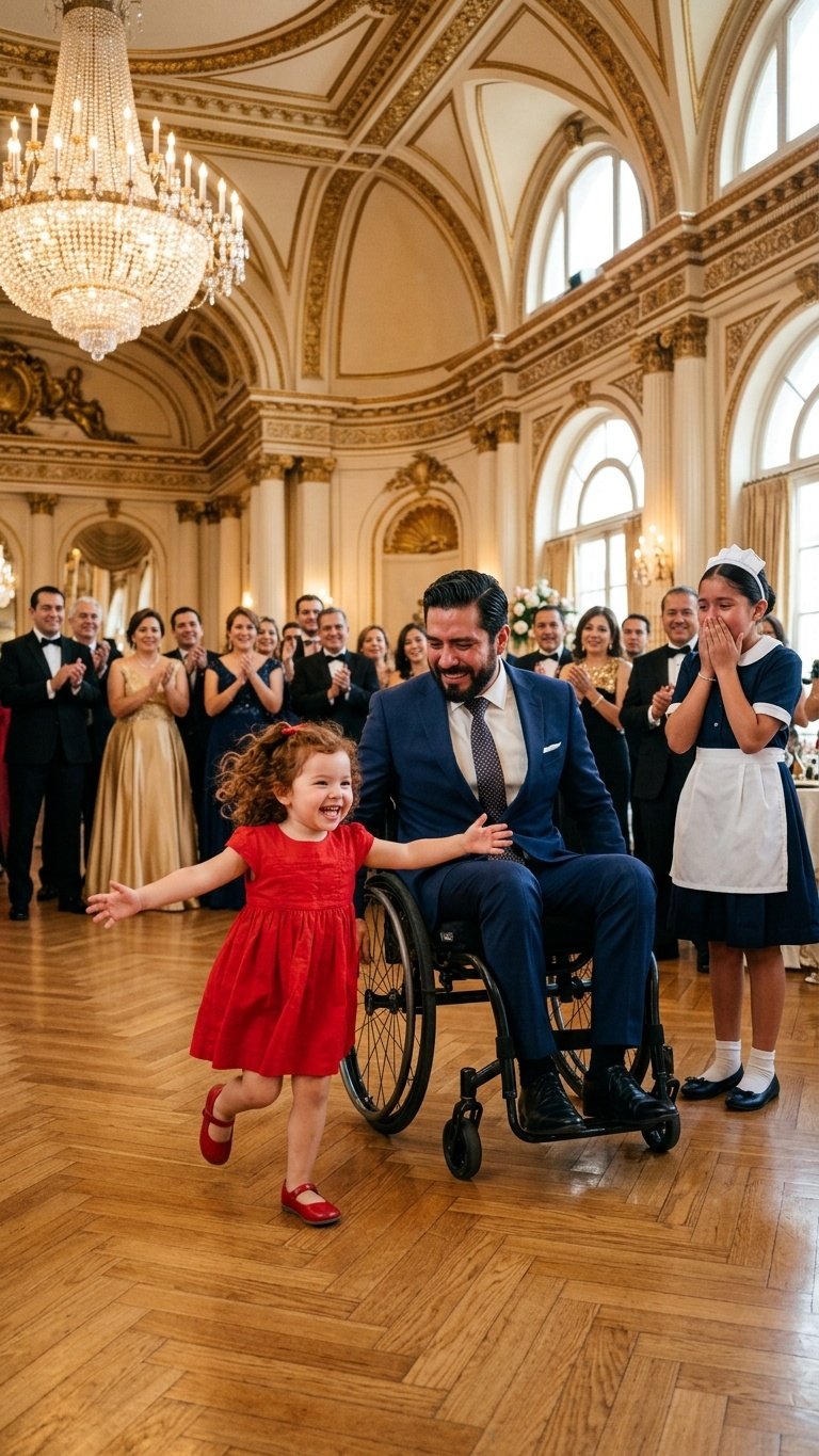 El trompetista tragó saliva y las primeras notas, tristes y poderosas, inundaron la hacienda. Don Roberto miró a Estrella, y la niña le devolvió una sonrisa valiente. Guiado por los pequeños pasos de la hija de su cocinera, el patriarca hizo girar su silla de ruedas al compás de la música. Daban vueltas lentas, majestuosas, en medio del patio. Esa escena no era un baile tierno; era la ejecución pública de 2 traidores. Cada vuelta de la silla era un latigazo en el orgullo de sus hijos. Estrella, con su ropa humilde, tenía más clase y grandeza en su alma infantil que todas las herederas millonarias que los observaban aterradas.