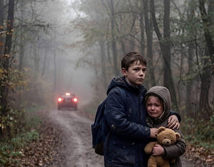 Los padres llevaron a sus hijos hasta lo más profundo de un bosque aislado y los dejaron allí con apenas una bolsa de comida y un poco de agua, convencidos de que nunca encontrarían el camino de regreso. Pero todo dio un giro inesperado cuando un coche se detuvo junto a ellos… y alguien bajó.