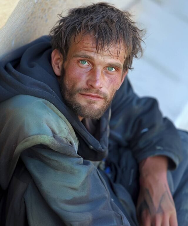 Parecía rudo, tenía una barba descuidada y vestía ropa sucia, pero había algo en sus ojos, una bondad y una tristeza que me hizo detenerme.