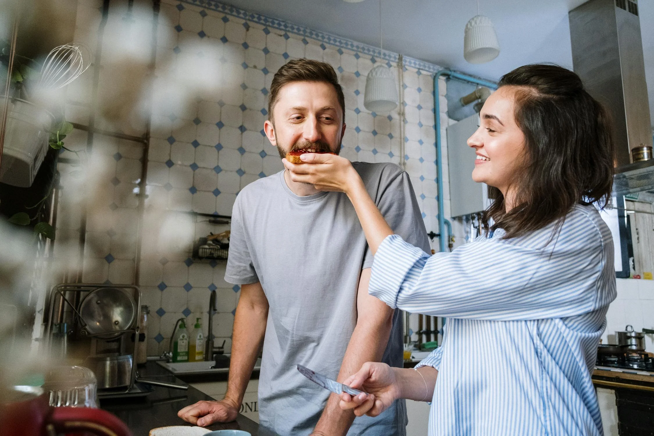 —Buenos días, encantador —le contesté, golpeándole juguetonamente con el paño de cocina.