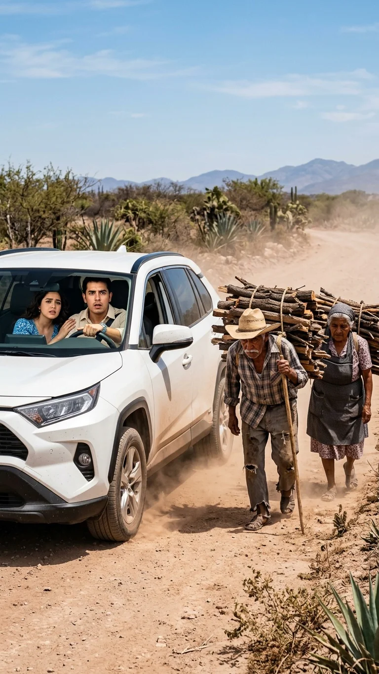 A la orilla del camino, bajo los despiadados 35 grados de temperatura, caminaban 2 ancianos encorvados. Sobre sus espaldas cargaban al menos 20 pesados kilos de leña seca. Avanzaban con extrema lentitud, con los pies metidos en viejos huaraches cubiertos de polvo y sus cuerpos frágiles vencidos por el agotamiento. Emiliano redujo la velocidad de la camioneta, sintiendo 1 presión insoportable en el pecho.