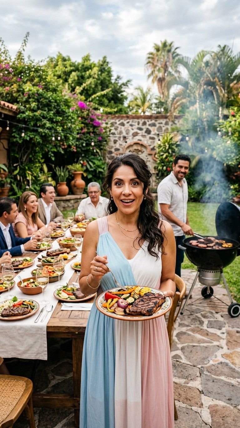 — Mariana, mejor no cojas ese plato. Lleva ensalada con crema. No te conviene — dijo Ricardo, sin siquiera levantar la vista de los cortes de arrachera que se asaban en la parrilla. Segundos después, soltó una carcajada ronca que resonó en el patio.