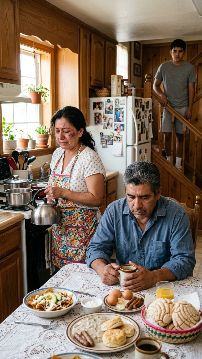 Mateo entró a la cocina bostezando ruidosamente, frotándose la cara con 1 mano, vistiendo 1 sudadera sucia y con la misma actitud de rey intocable de la noche anterior. Al ver la mesa rebosante de comida elegante, 1 sonrisa burlona se dibujó en su boca. En su mente torcida, asumió que su madre, muerta de miedo por el golpe, intentaba comprar la paz con 1 desayuno de reyes.