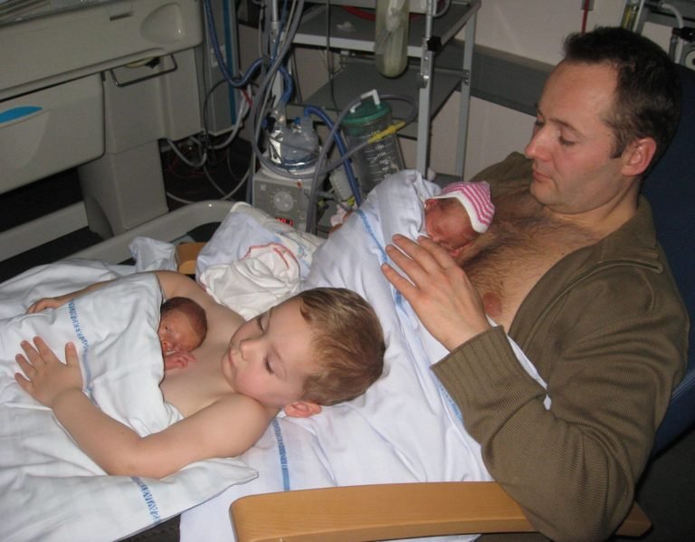 Algunas imágenes son tan impactantes, tan conmovedoras, que son casi imposibles de resistir. Una de ellas es la de un niño pequeño que ayuda a su padre a abrigar a sus dos hermanas gemelas prematuras.