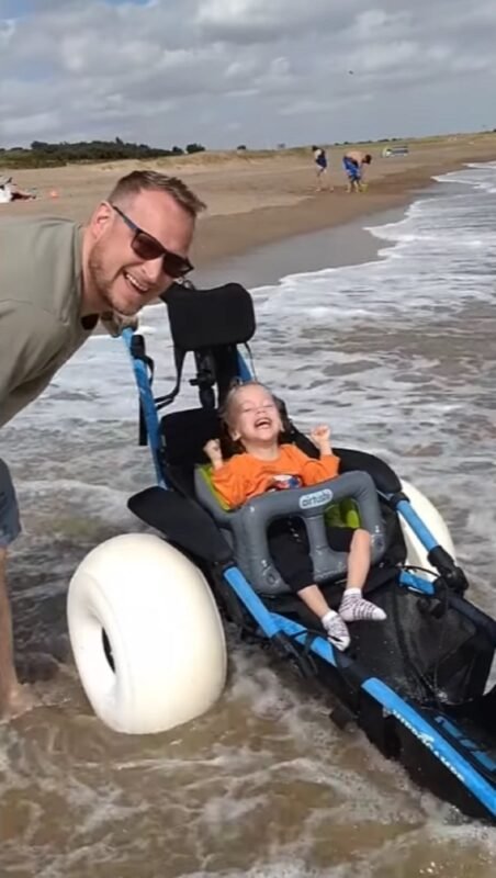 Un niño de 2 años con parálisis cerebral disfrutó de la playa por primera vez gracias a una silla de ruedas especial.
