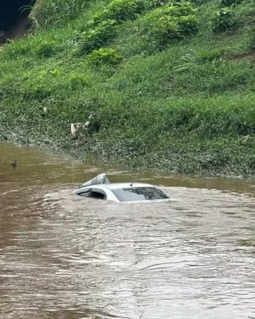 El auto permanece sumergido en el río Paraibuna y, según los bomberos, la retirada del vehículo solo será posible tras la reducción del nivel del agua, que está elevado debido a las lluvias que azotaron la región en los últimos días.